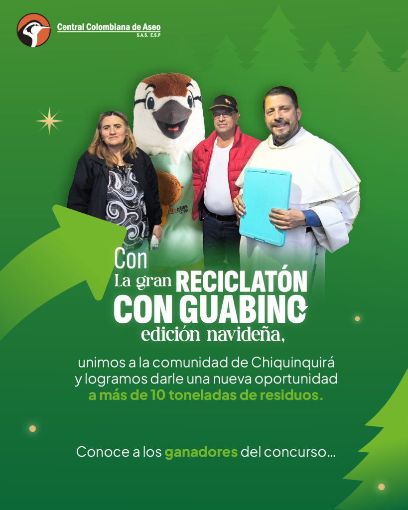 La temporada navideña fue el escenario perfecto para fortalecer el compromiso ambiental en el municipio, gracias a La Gran Reciclatón con Guabino – Edición Navideña, una iniciativa liderada por Central Colombiana de Aseo, que invitó a las comunidades a recolectar y transformar los residuos aprovechables en oportunidades de aprendizaje, creatividad y trabajo colectivo.